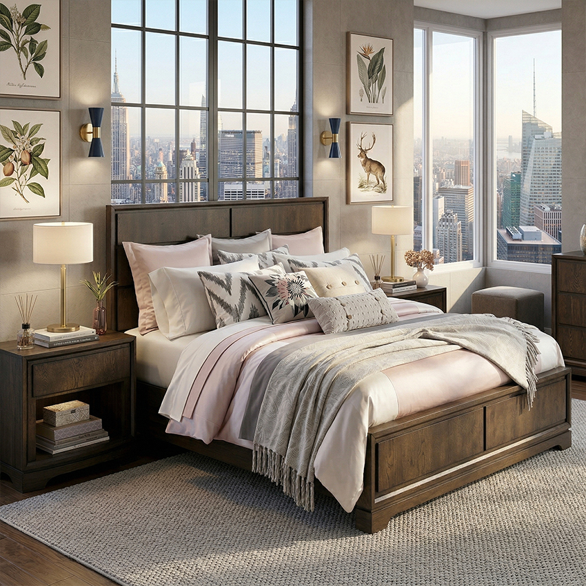 1657 Wave Panel Bed (침대+협탁+화장대)
