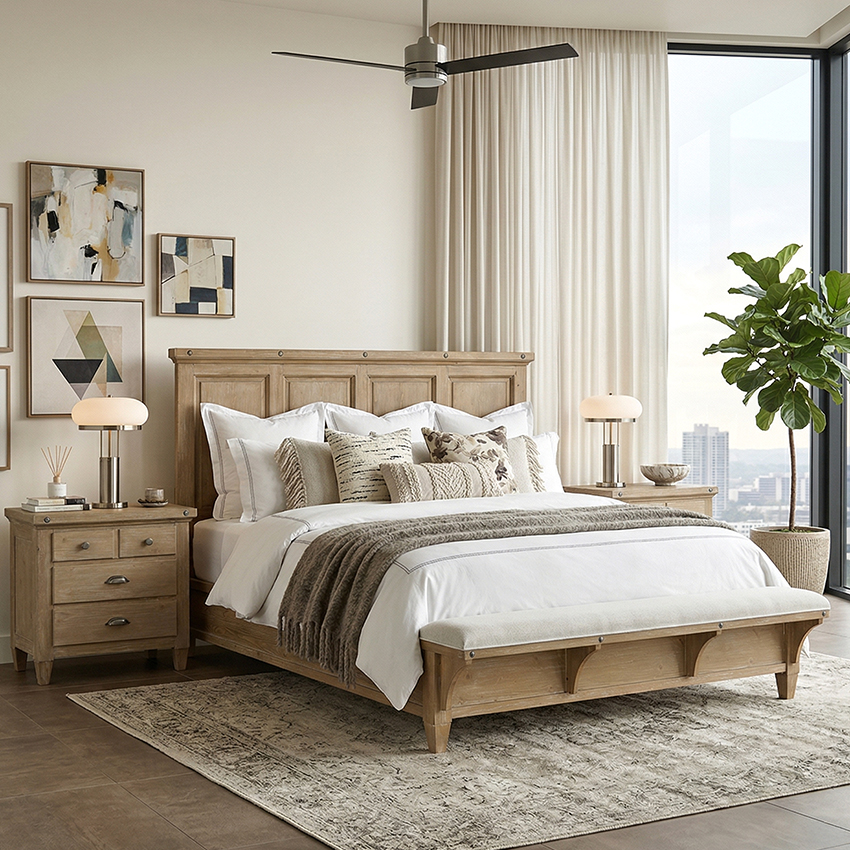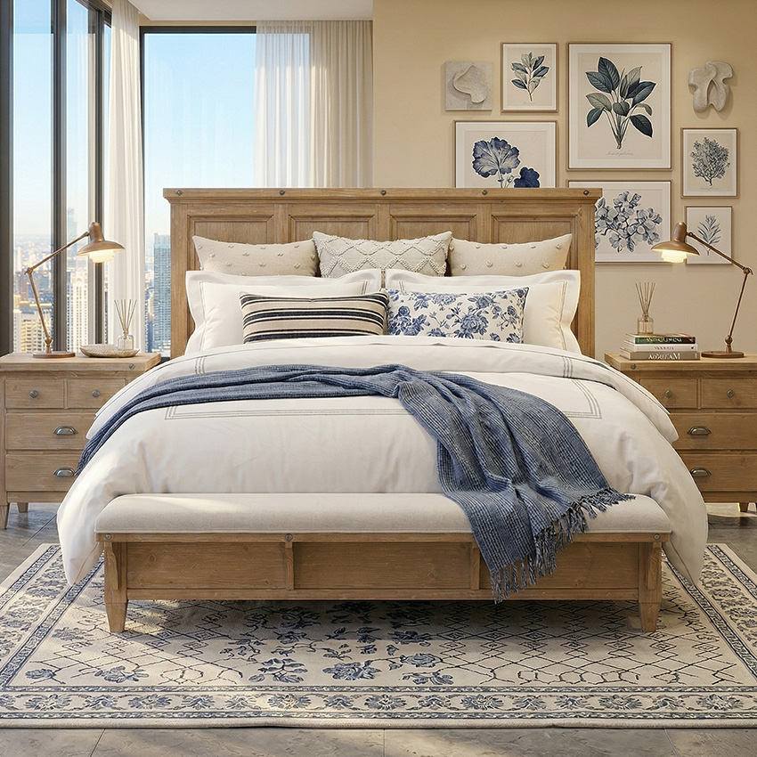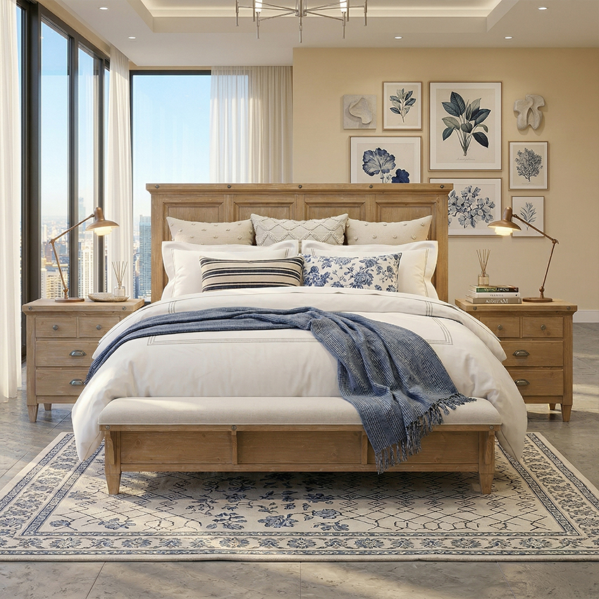 B5487-BRM Panel Bed (침대+협탁+화장대)