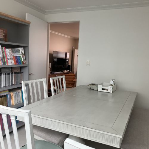 이번에 별내로 이사하면서 6인식탁 알아보는중 미라지 사이트를 알게 되었고 한눈에 반한 이 식탁을 가격대가 있지만 사게 되었는데 배송 오자마자 사길 잘했다고 생각했어요 왜 망설였나 싶네요.. 너무 맘에 들어요.. 한쪽판만 연장해서 세팅했어요..