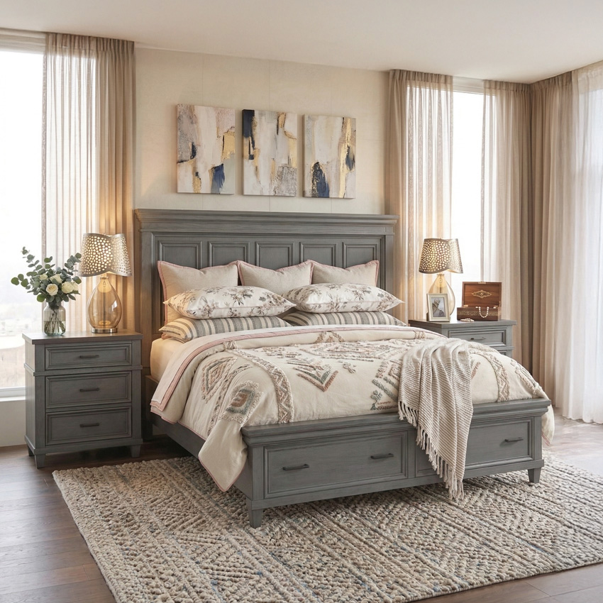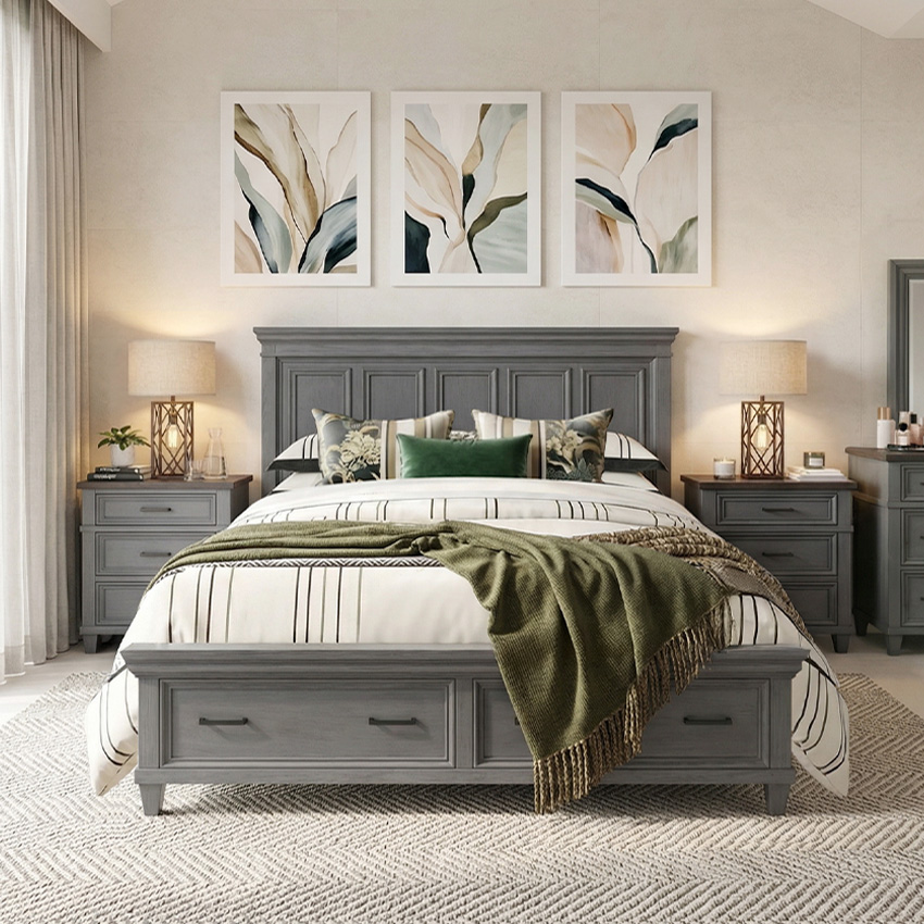 i248 Caraway-SLT Storage Bed (침대+협탁+화장대)