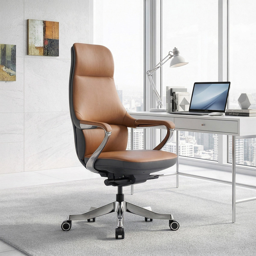 H1822A-Brown Leather Office Chair