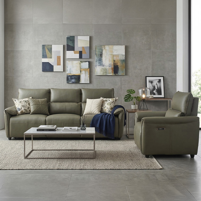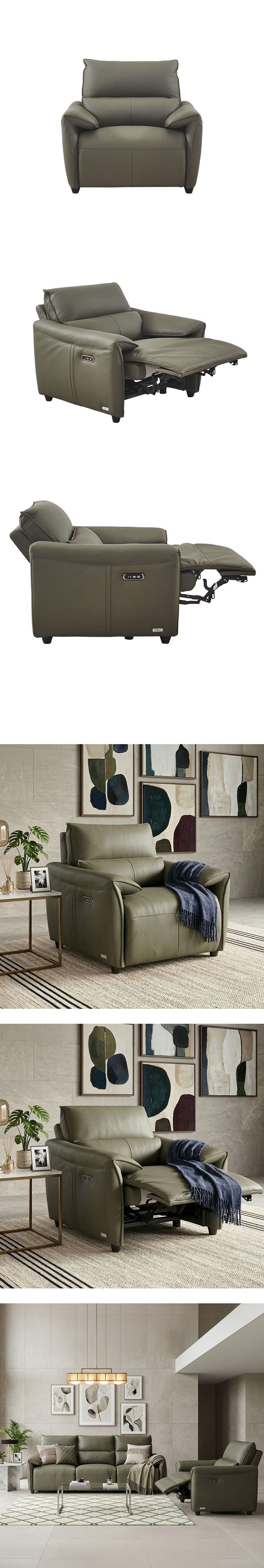 Lausanne-1S-Olive Leather Recliner Chair